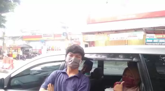 Pantauan terkini.id sekitar pukul 17: 30 WIB mobil berwarna silver bernomor Polisi B 1989 PYI sedang berhenti dan dikerubuti warga sekitar. Ternyata mereka sedang membagikan nasi kotak.