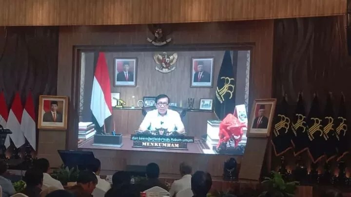 Menteri Hukum dan Hak Azasi manusia Yasonna Laoly, berkesempatan membuka seminar nasional dengan cara daring.